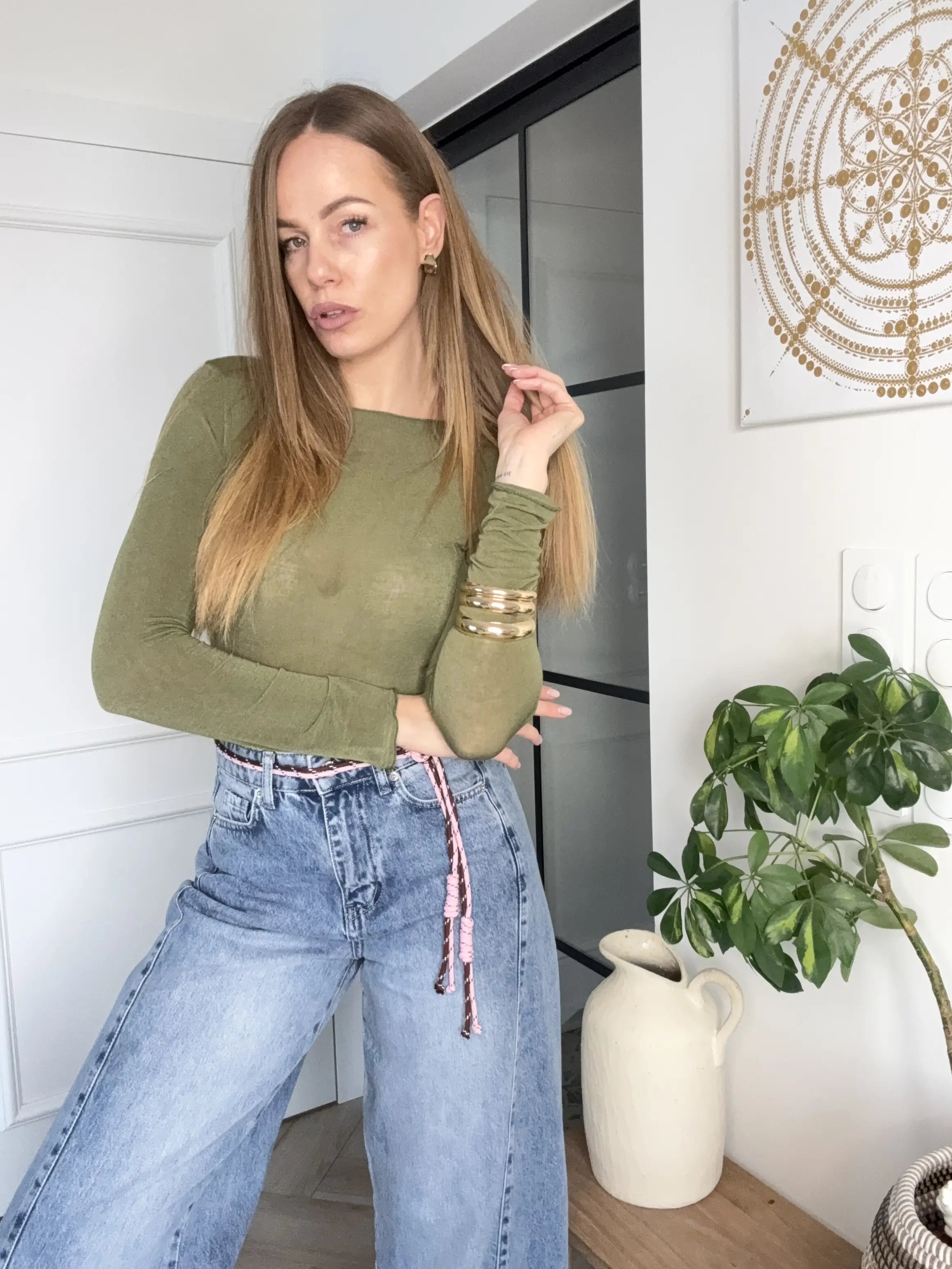 BLUZKA BIANCO Z WISKOZY I KASZMIRU OLIWKOWA