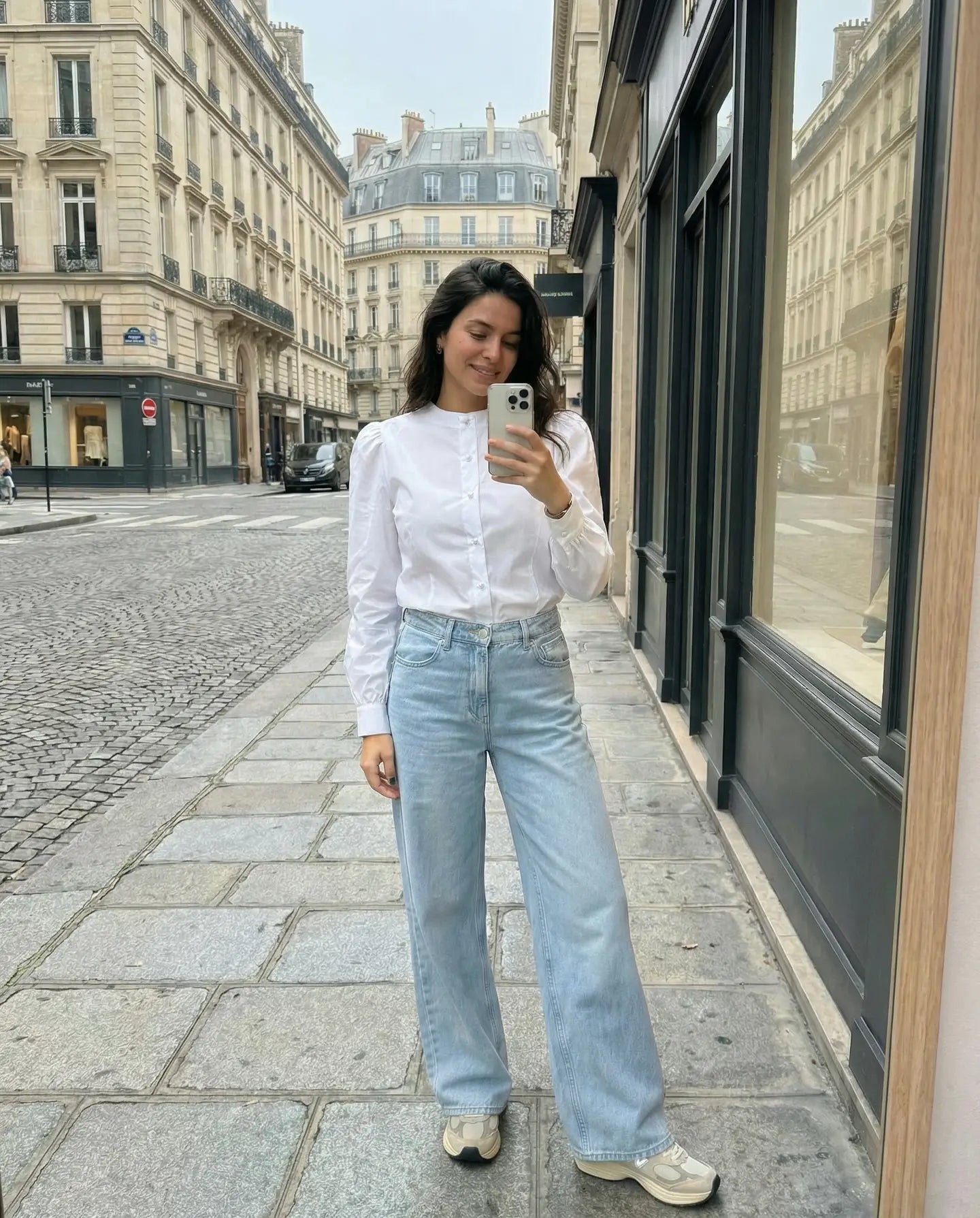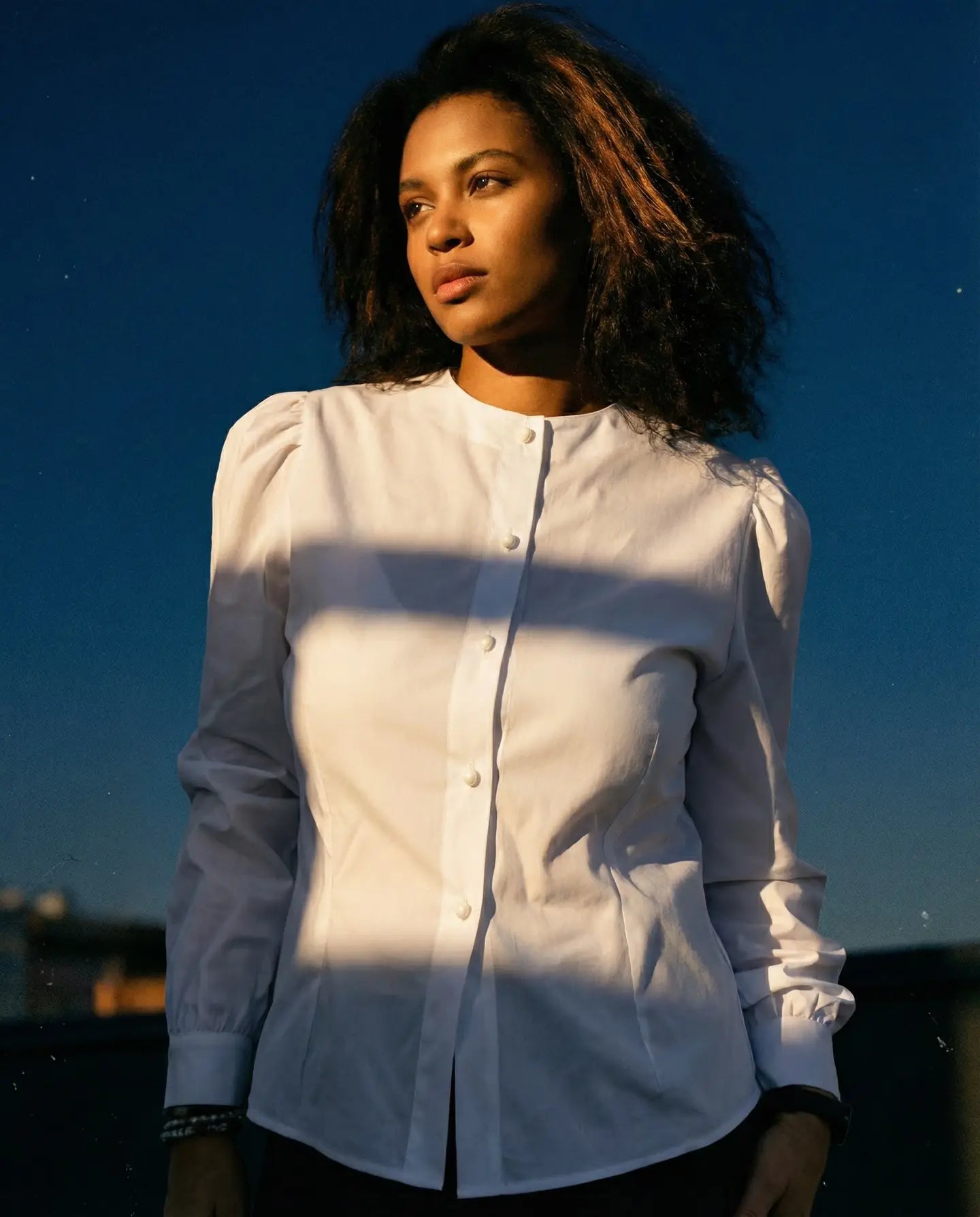 Biała koszula zapinana na białe, perłowe guziki to elegancka i ponadczasowa propozycja do wielu stylizacji. Taliowany krój subtelnie podkreśla sylwetkę, nadając całości kobiecego i schludnego charakteru.
