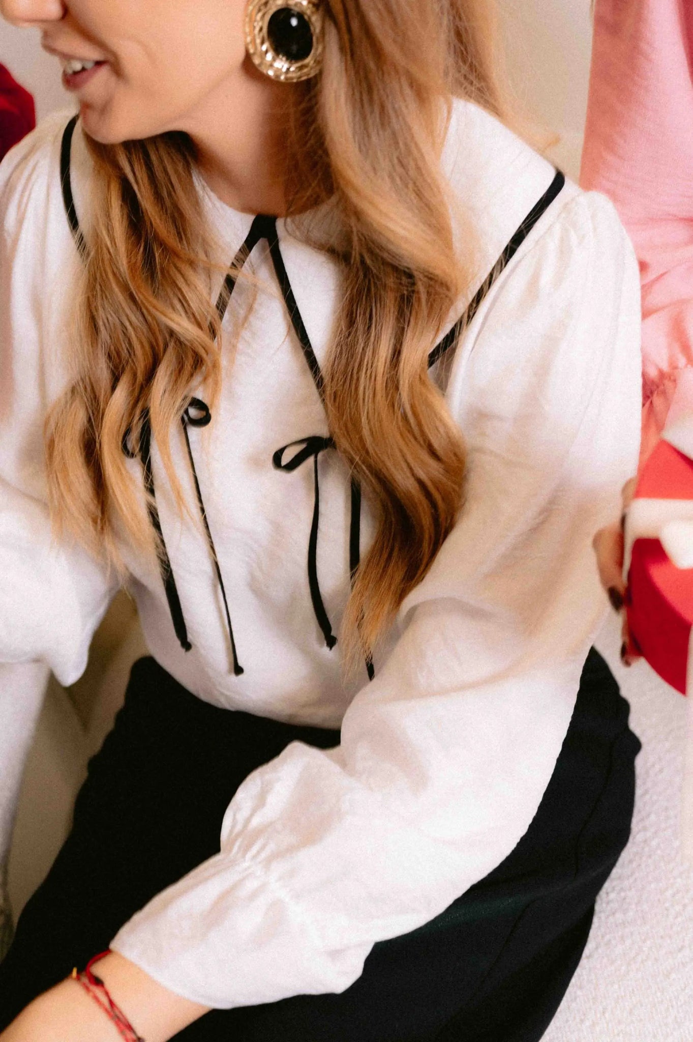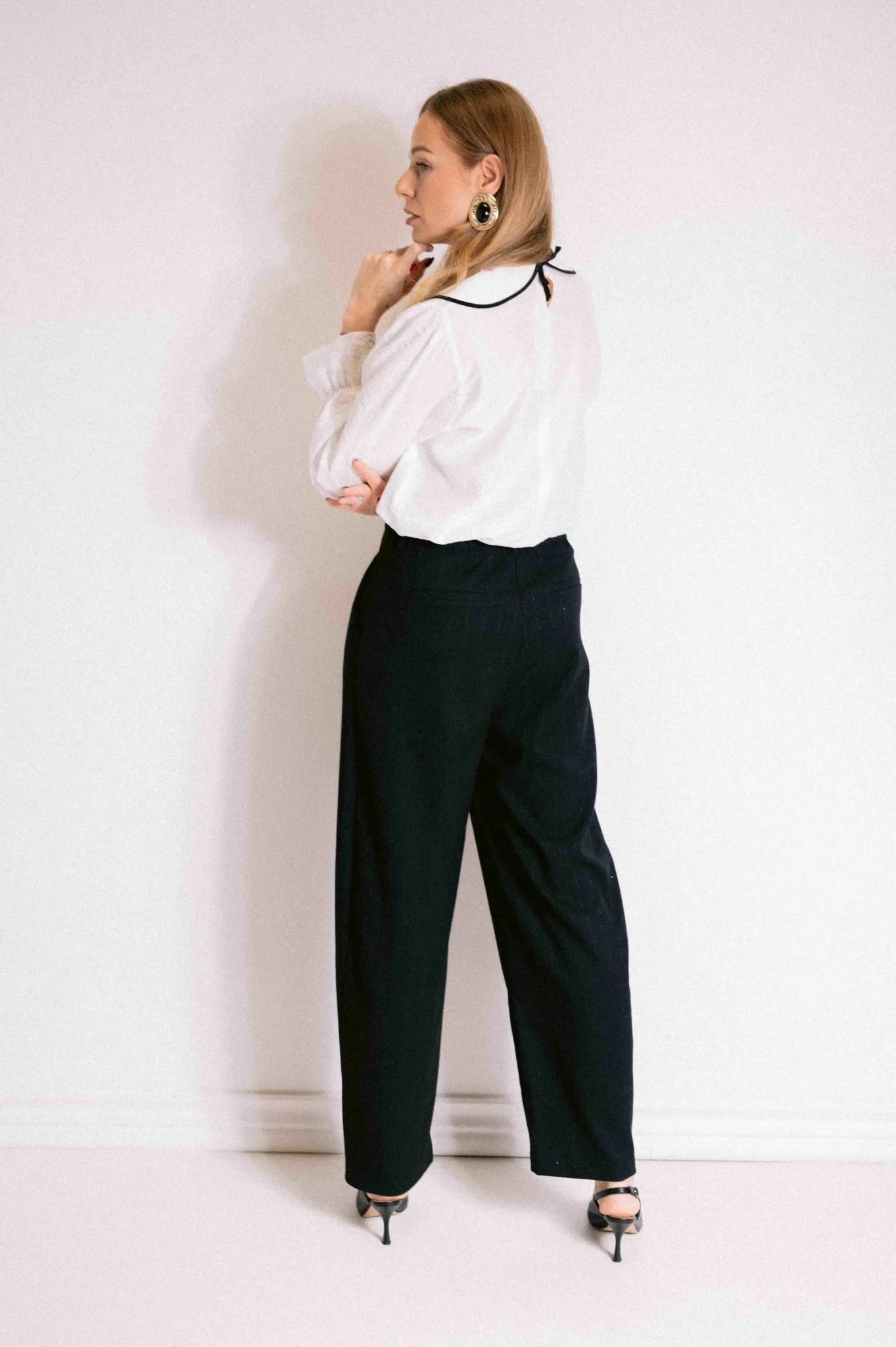 Wyjątkowa bluzka Rosa to połączenie subtelnej elegancji i romantycznego stylu. Zachwyca prostotą i dopracowanymi detalami. Klasyczny fason uzupełnia szeroki kołnierz z lamówką oraz delikatne kokardki. Długie bufiaste rękawy, zakończone dzwonkami dodają koszuli lekkości. Doskonale sprawdzi się zarówno w codziennych, jak i bardziej eleganckich stylizacjach.