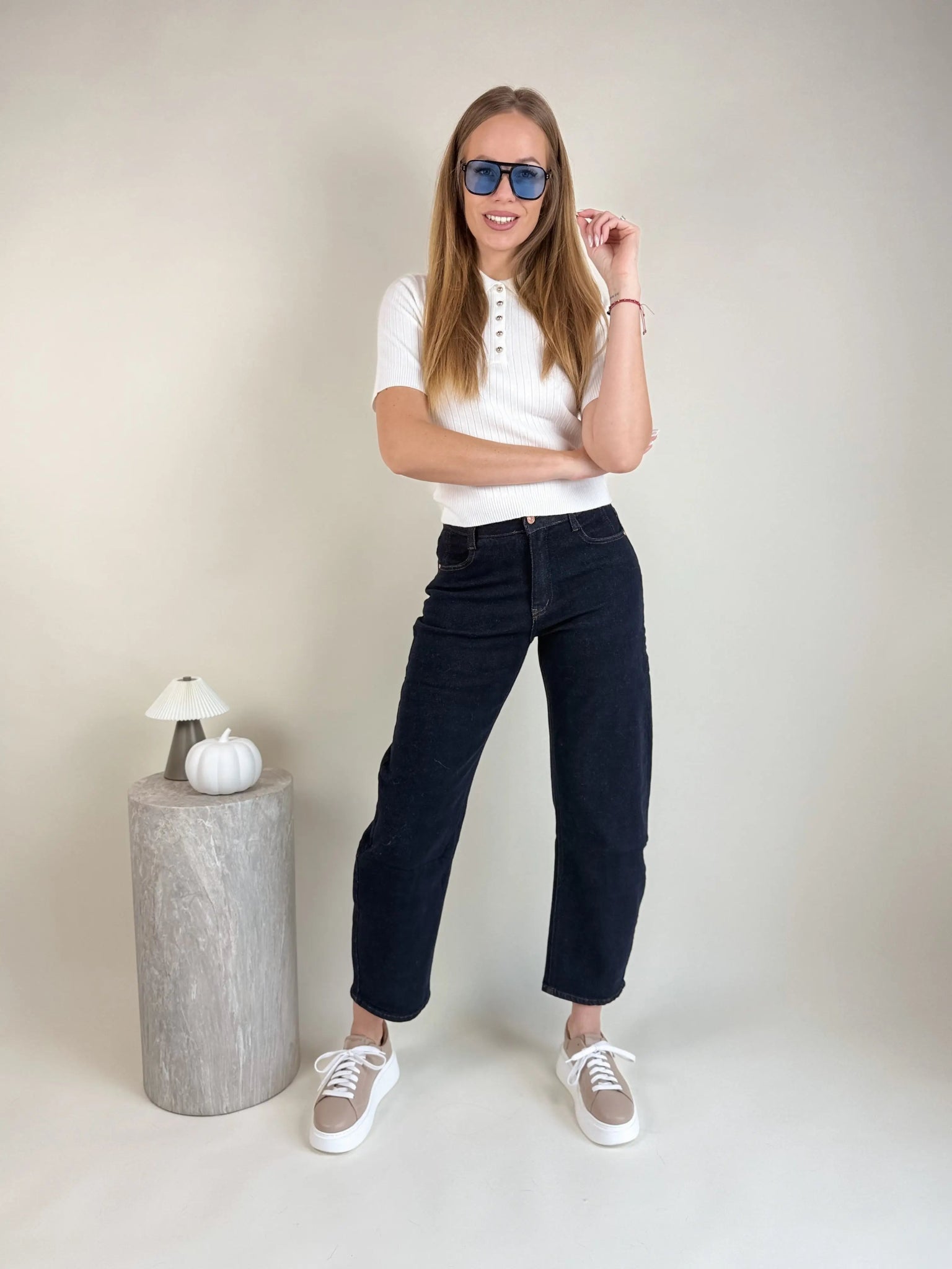 Te okulary przeciwsłoneczne to połączenie minimalistycznego stylu i nowoczesnego charakteru. Czarne oprawki nadają im klasyczną elegancję, natomiast niebieskie szybki wprowadzają świeży, dynamiczny akcent, który wyróżnia je na tle standardowych modeli. Dzięki temu okulary prezentują się modnie, odważnie i doskonale uzupełniają zarówno sportowe, jak i casualowe stylizacje.