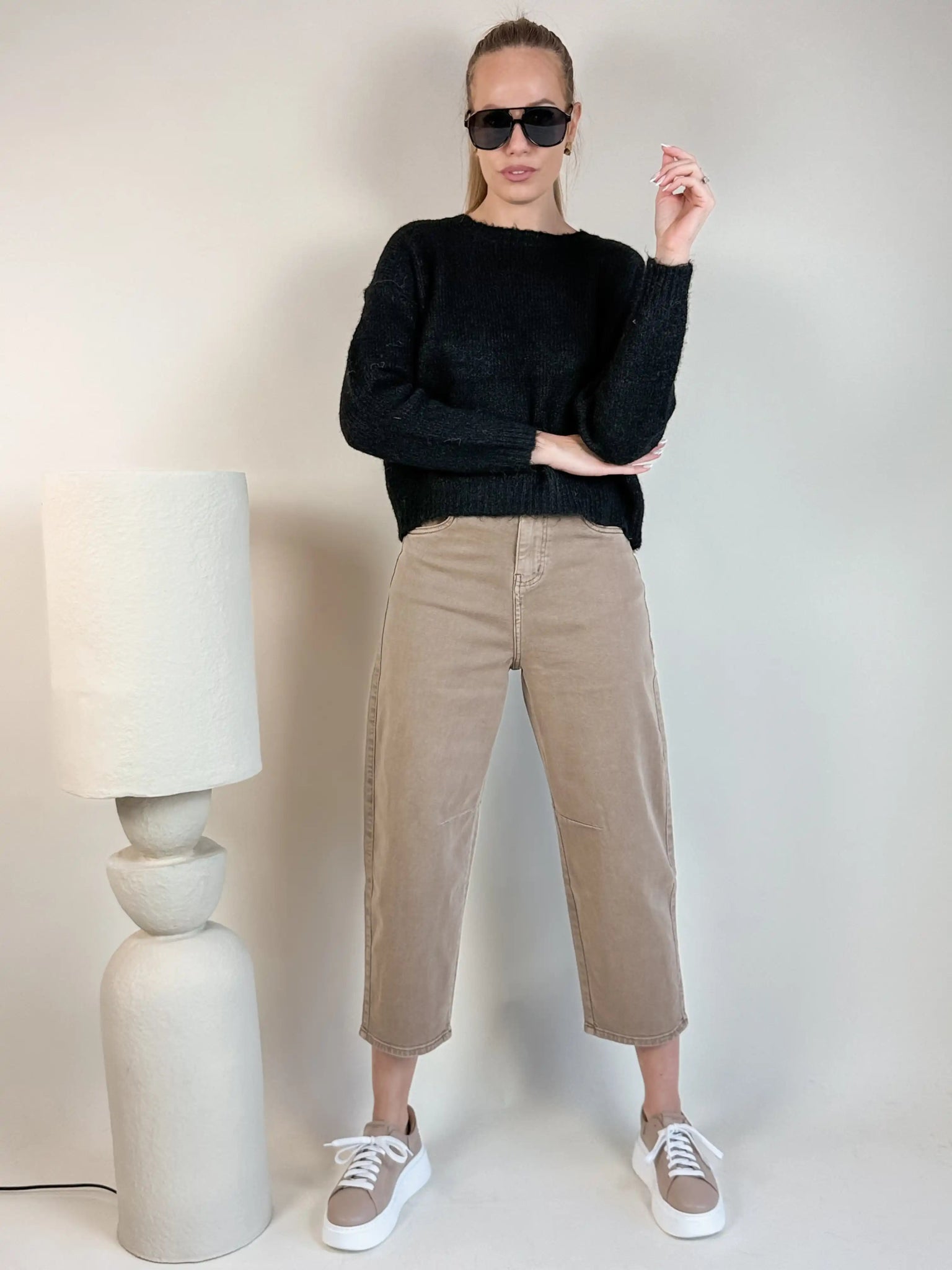 Model Carmen został zaprojektowany z myślą o kobietach, które chcą wyglądać stylowo. Spodnie o luźniejszym kroju, który zapewni komfort oraz wygodę noszenia. Dzięki fasonowi balloon spodnie dopasowują się do sylwetki, lecz nie krępują ruchów. Ponadto wysoki stan pięknie podkreśla talię, co sprawia, że sylwetka wygląda proporcjonalnie i kobieco.