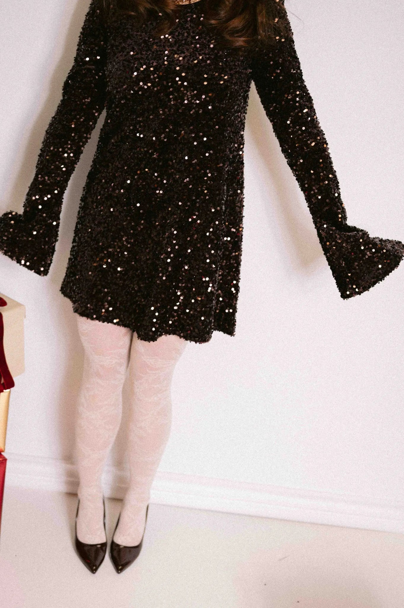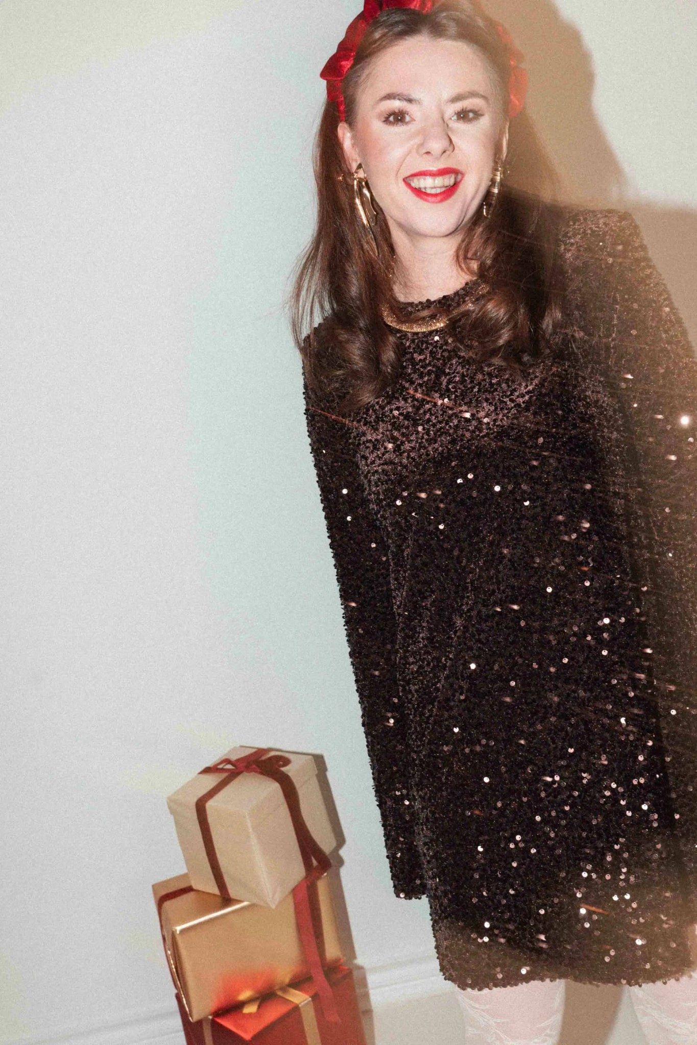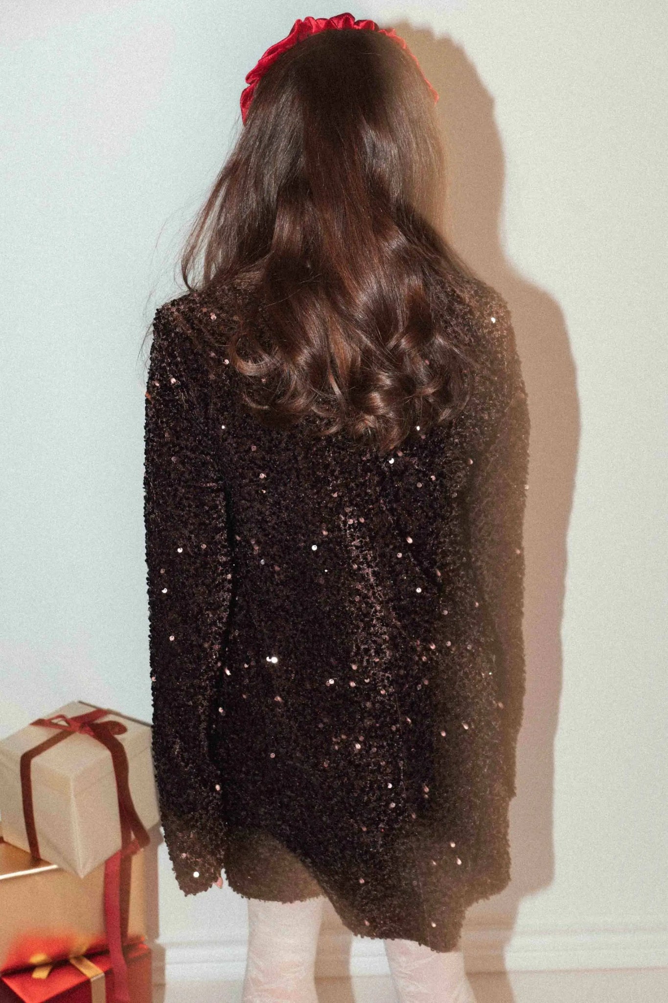 Została wykonana z miękkiego materiału. Czekoladowe cekiny subtelnie odbijają światło, nadając stylizacji efekt glamour. Vicki to idealna propozycja na świąteczne przyjęcia, sylwestra, uroczyste kolacje czy wyjątkowe okazje.