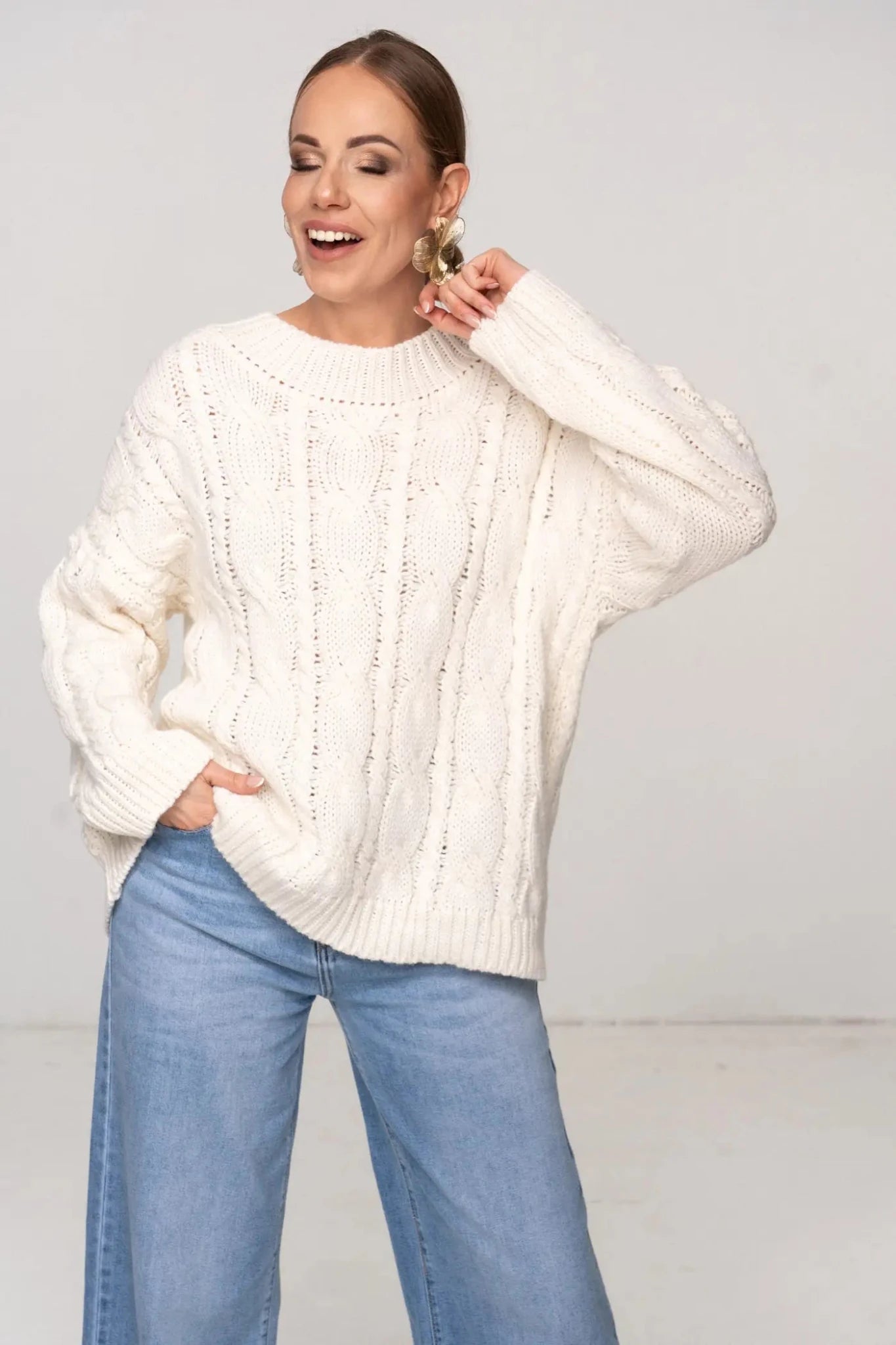 Zanurz się w miękkości i komforcie naszego kremowego swetra Aura z grubym, warkoczowym splotem. Wykonany z wysokiej jakości mieszanki wełny...