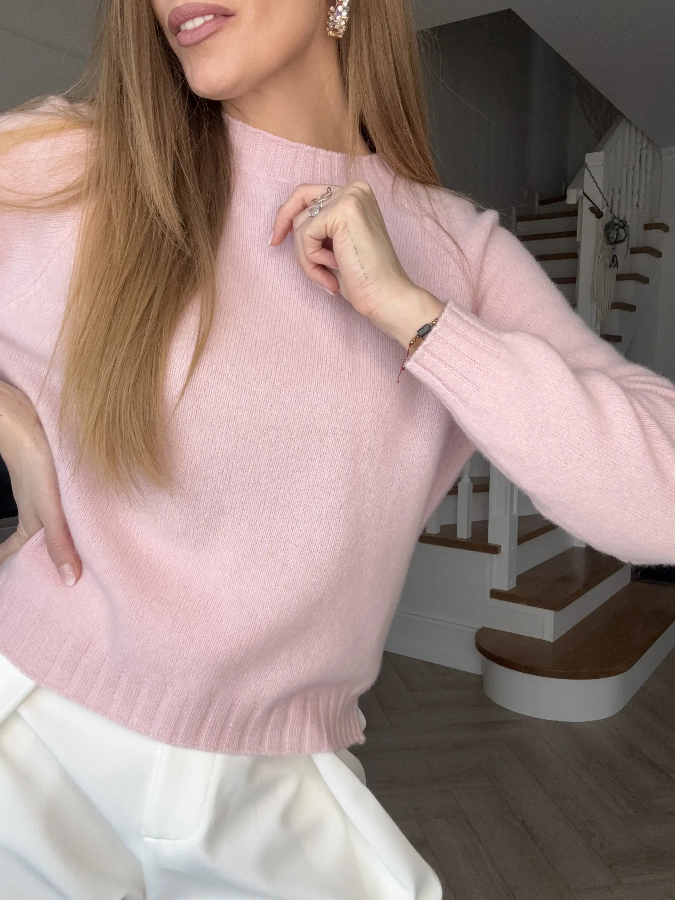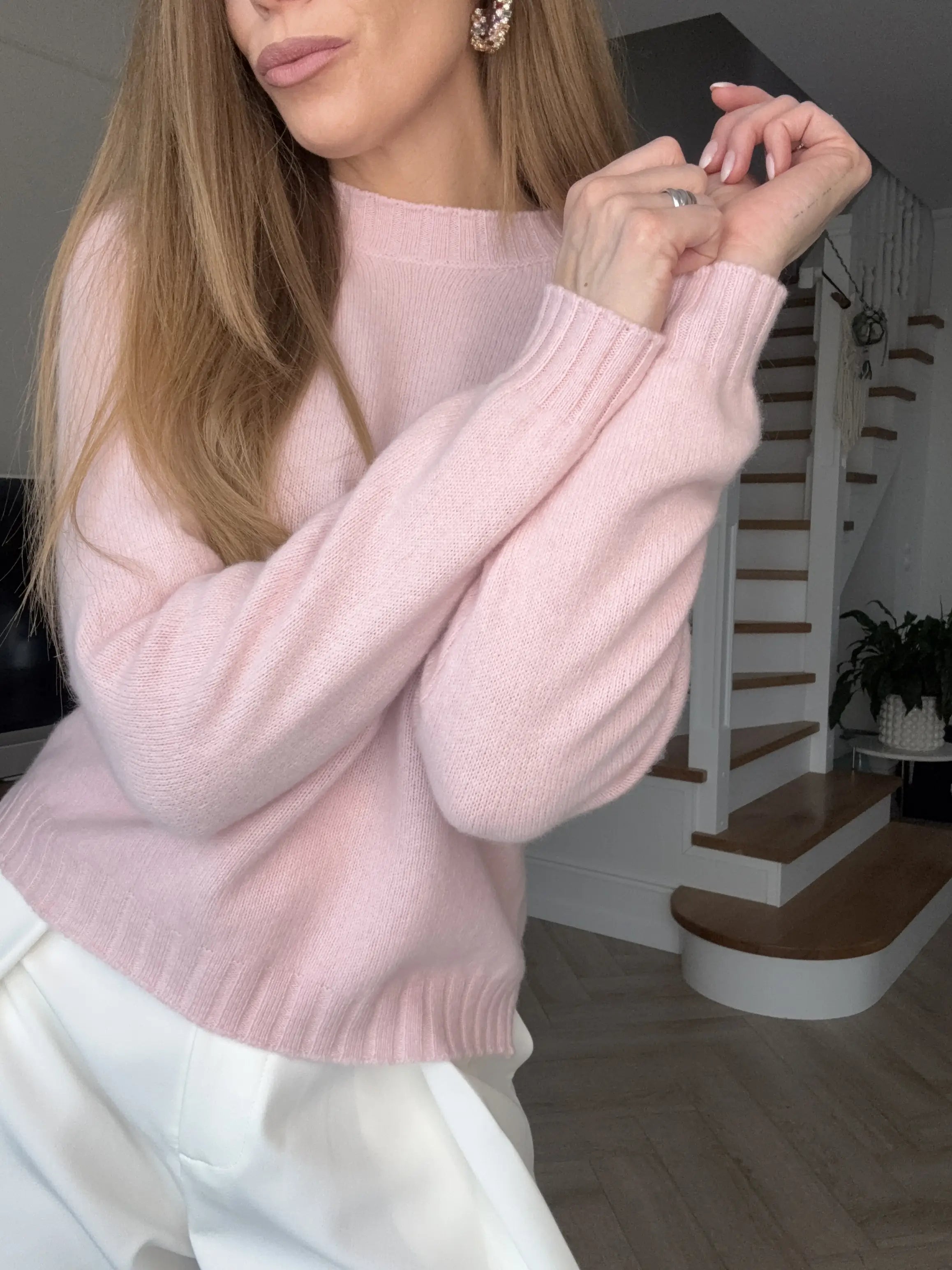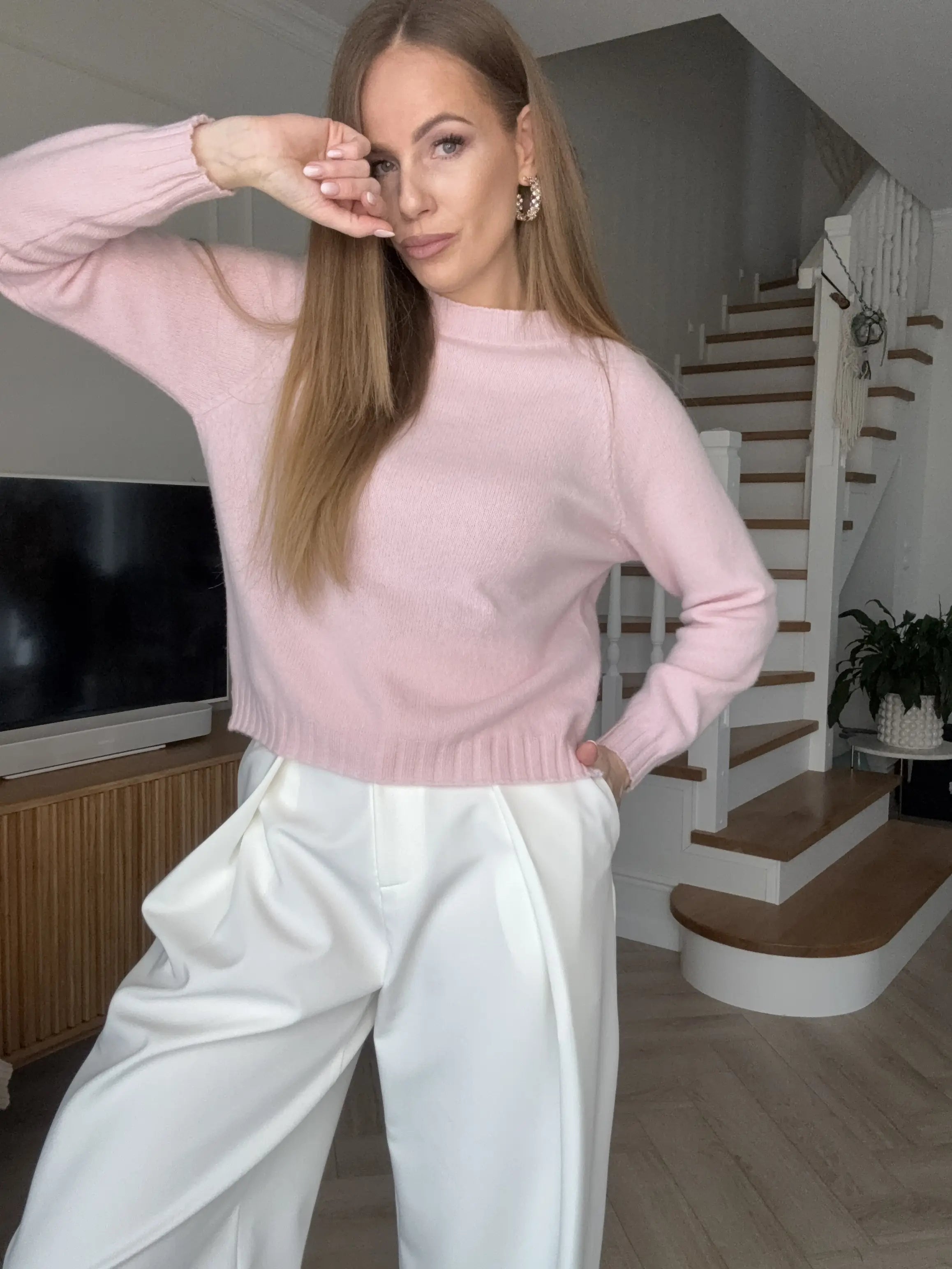 Naturalna wełna dziewicza (virgin wool) wyróżnia się doskonałymi właściwościami termoregulacyjnymi – grzeje w chłodne dni, a jednocześnie pozwala skórze oddychać. Różowy odcień swetra wnosi do stylizacji ciepło i miękkość. To kolor, który koi, otula i dodaje lekkości nawet w chłodniejsze dni. Subtelny, ale wyrazisty - idealny na co dzień i na momenty, gdy chcesz poczuć się komfortowo i stylowo.