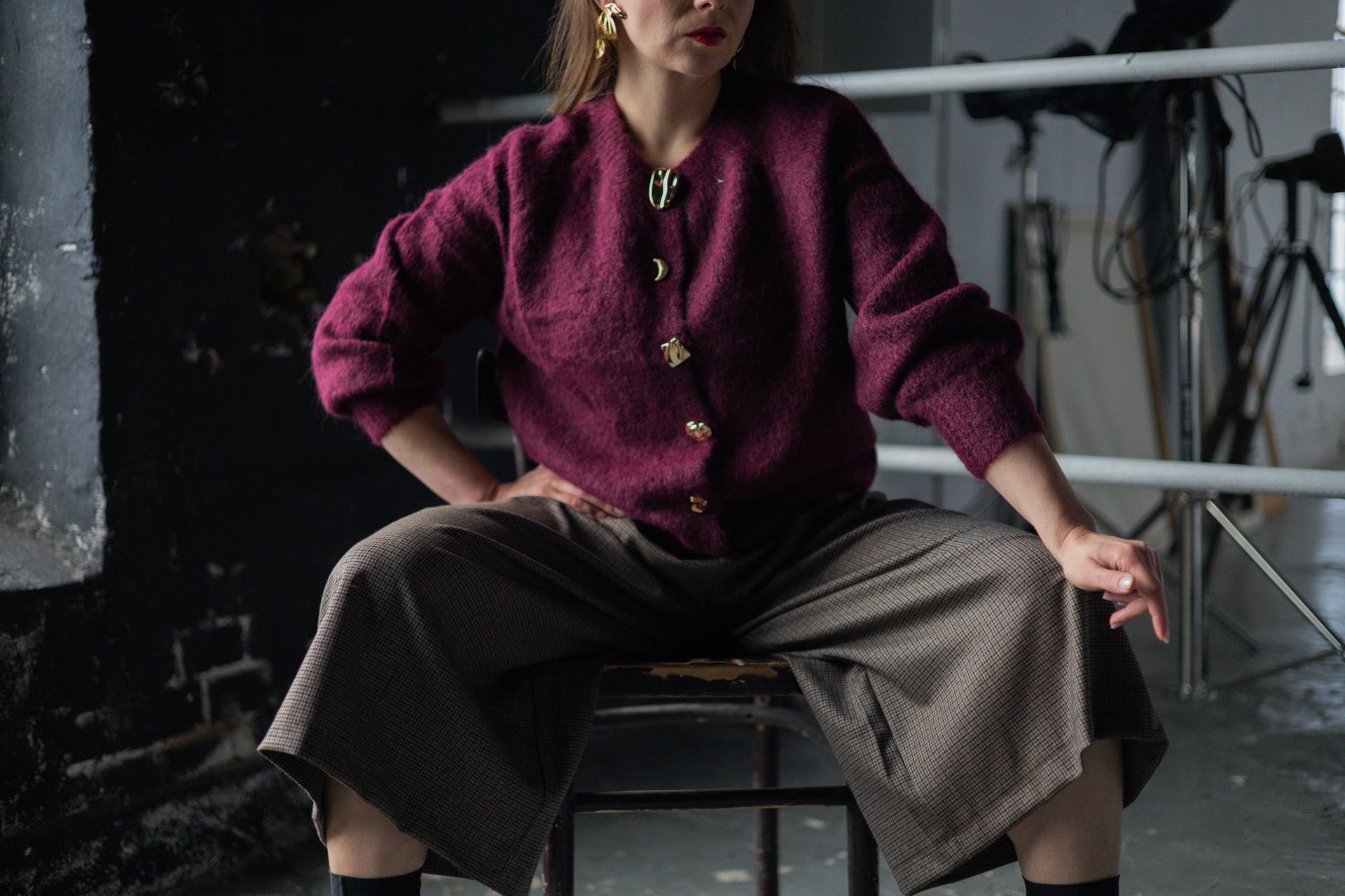 Miękki, przytulny i pełen charakteru. Sweter Else to połączenie klasyki z modowym akcentem. Wykonany z puszystej dzianiny o delikatnym włosiu. Jego największym atutem są dekoracyjne, złote guziki o różnych kształtach, które nadają całości niepowtarzalnego, biżuteryjnego wykończenia. Prosty, lekko pudełkowy krój o długości do bioder sprawia, że sweter doskonale komponuje się zarówno ze spódnicą, jak i z jeansami czy eleganckimi spodniami. To idealny wybór na co dzień i na wieczorne wyjścia, gdy chcesz dodać stylizacji nuty elegancji.
