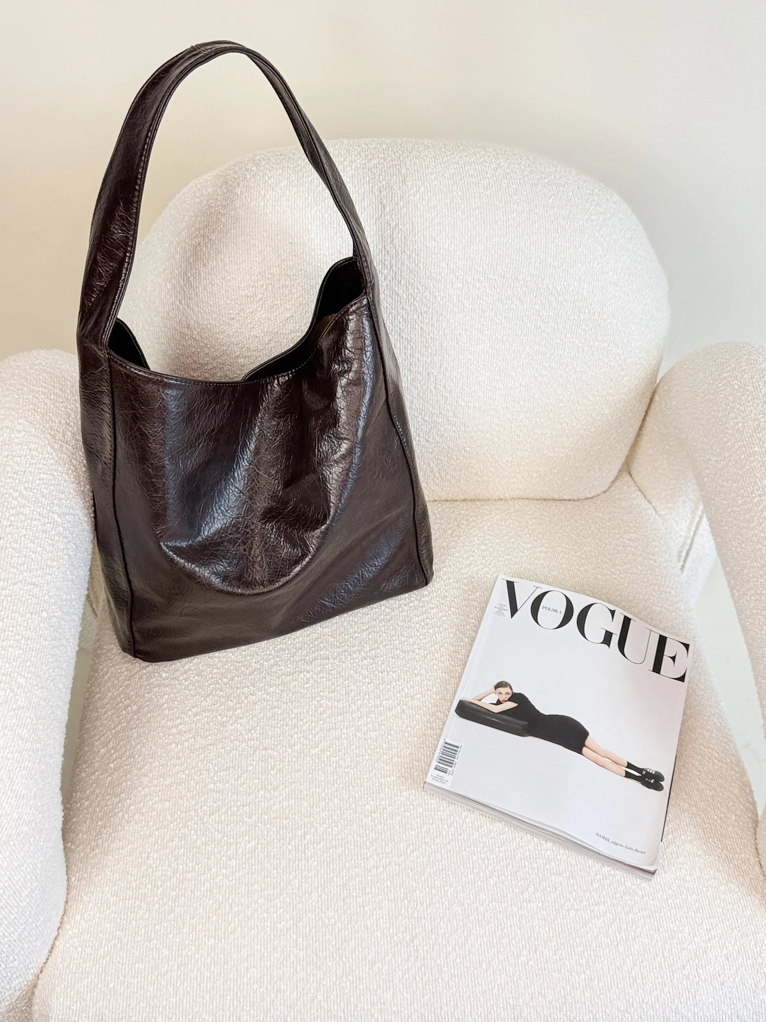 Stylowa i pojemna torebka Mira wykonana z materiału imitującego skórę kolorze czarnym. Minimalistyczny design i delikatny połysk sprawiają, że doskonale pasuje do codziennych, jak i bardziej eleganckich stylizacji.